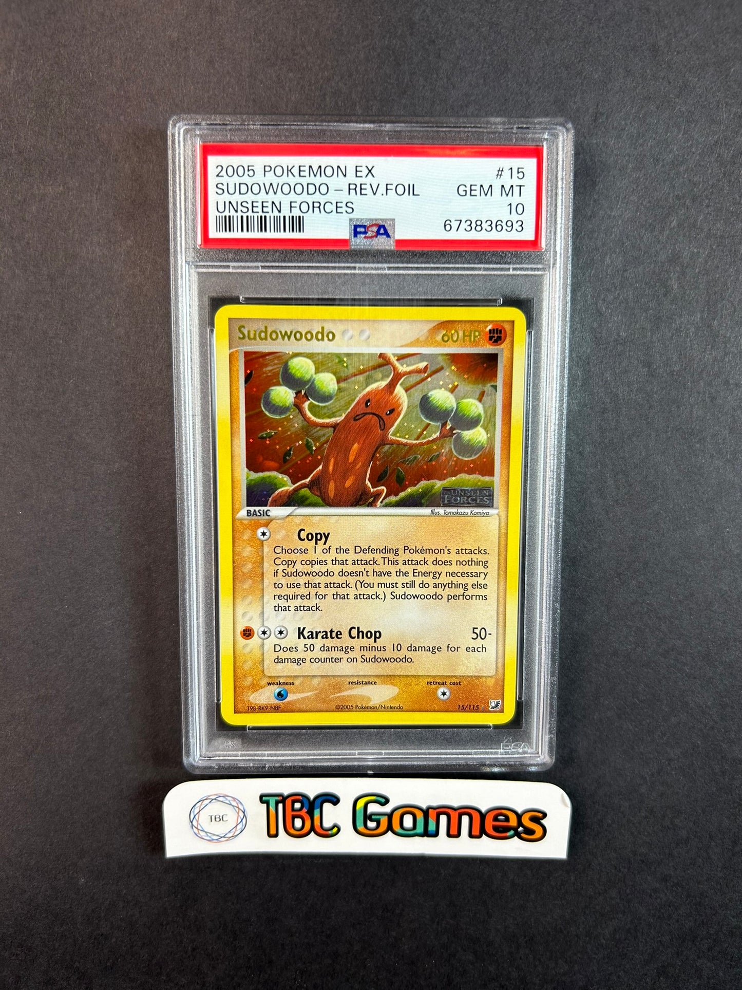- Sudowoodo Unseen Forces Reverse Holo 15/115 PSA 10 Komiya