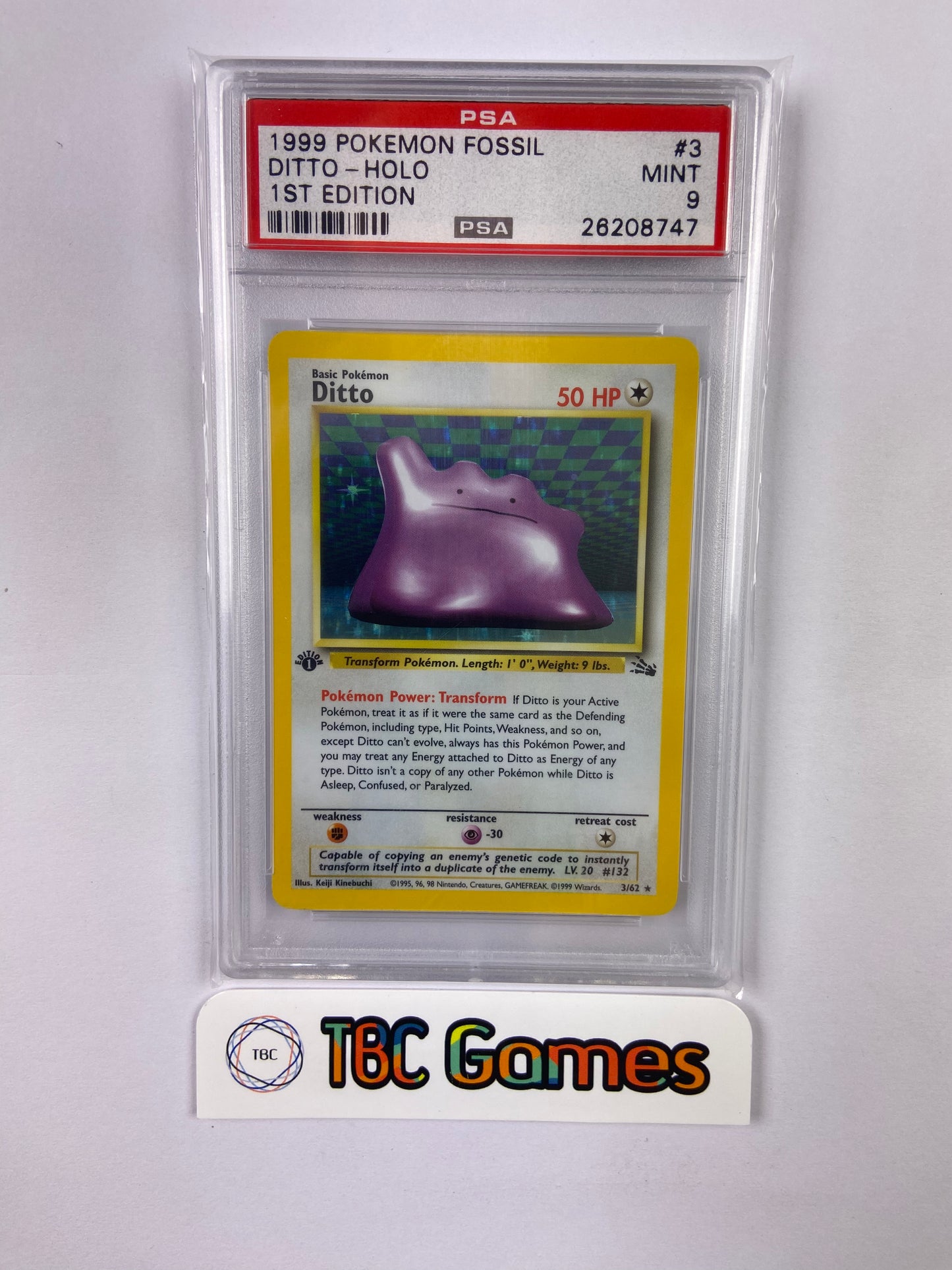 - Ditto Fossil 1st Edition Holo 3/62 PSA 9