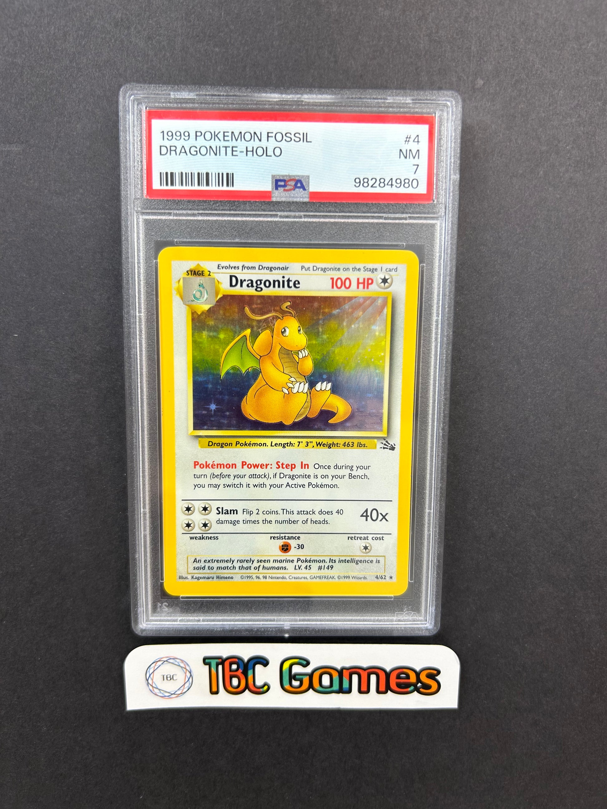 - Dragonite Fossil Holo 4/62 PSA 7