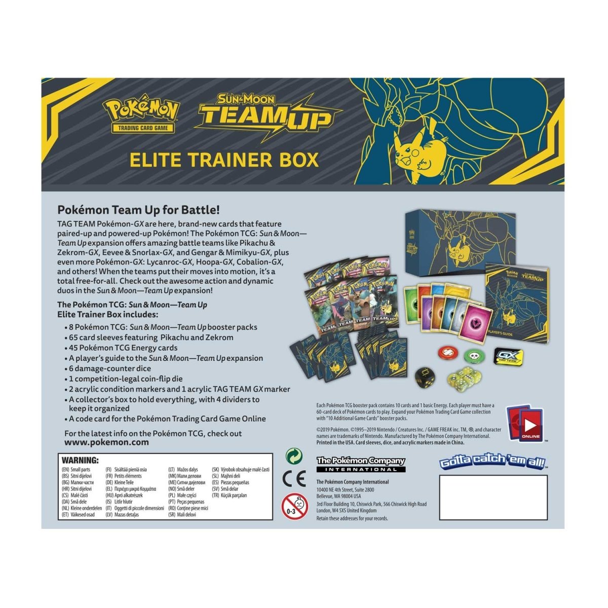 The Pokémon TCG: Sun & Moon—Team Up Elite Trainer Box includes: